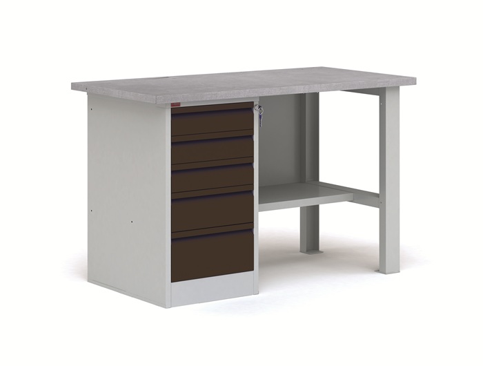 Металлические слесарный верстак ВП-3/1,6 черный представляет собой рабочий стол для ручной обработки металлических, деревянных изделий, а также предметов, выполненных из других материалов. Металлический верстак используется в мастерских, гаражах, автосервисах и в других рабочих зонах. Он являются основой, как небольшого промышленного производства, так и крупного предприятия. Допустимая равномерно распределенная нагрузка на верстак - 1000 кг, на полку верстачную - 40 кг, на выдвижной ящик - 30 кг. В комплект верстака ВП-3/1,6 входит: столешница СТ-1,6 из МДФ, покрытая оцинкованным листовым металлом, комплект К-2/1,6 (стенка задняя металлическая, металлическая верстачная опора), тумба Т-2 с пятью выдвижными ящиками. Тумба закрывается центральным ключевым замком. Тумбу можно установить как с левой, так и правой стороны верстака. Дополнительно на верстак можно установить два перфорированных экрана соответствующего размера, аксессуары на экран. Цвет: верстак - серый Ral 7035, лицевая панель ящиков - черный муар Ral 7021. Гарантия 1 год. Срок службы 10 лет