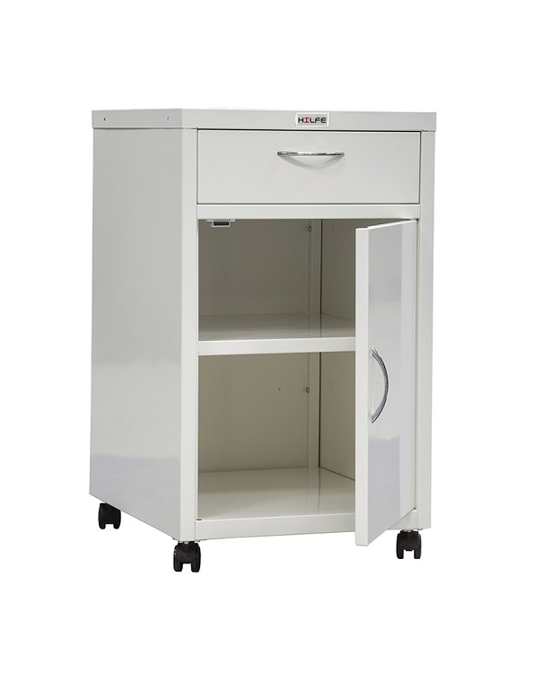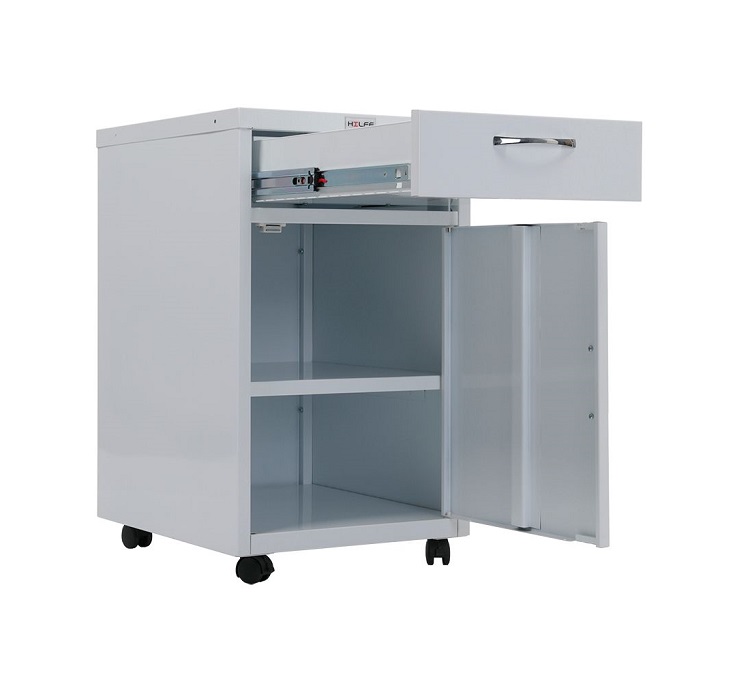 Тумба медицинская подкатная МД ТП-2 предназначена для хранения личных вещей, одежды, документов в больницах и других медицинских учреждениях, а также может использоваться как приставной элемент мебели у рабочего стола или кровати. Корпус изготовлен из стали толщиной 0,6 мм, двери из стали толщиной 0,7 мм. Тумба разделена на два отделение. В верхнем отделение установлен выдвижной ящик с телескопическими направляющими, которые обеспечивают свободный и плавный ход ящика при полной загрузке. В нижнем отделение установлена полка и дверь. Тумба МД ТП-2 оборудована колесами, два из которых снабжены стопорами. Дополнительные опции: пластиковые опоры вместо колес, установка ключевого замка HILFE (2000 комбинаций). Цвет белый. Тип покрытия гигиенически безопасное, коррозийно-устойчивое порошковое. Поставляются в разобранном виде