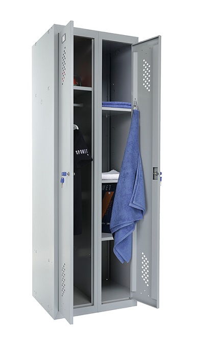 Шкаф для раздевалок усиленный Практик ML 21-60U предназначен для хранения сменной одежды в производственных, спортивных и других помещениях, а также для организации камер хранения. Представляет собой сборно-разборную жесткую конструкцию, усиленную сварной рамой. Собирается в вертикальном положении при помощи зацепов и саморезов. Специальные элементы боковых креплений на боковой стенке позволяет наращивать ряд модулей любой длины. Все модули серии ML совместимы между собой. Шкаф МL 21-60U оснащен улучшенной вентиляцией на дверях и задней стенке. Шкаф разделен на две секции. Одна секция комплектуется полкой для головного убора и перекладиной для вешалок и крючками. Вторая секция комплектуется 4 полками. Двери закрываются ключевым замком Практик (2000 комбинаций). Открывания дверей правостороннее или левостороннее. Цвет: серый-полуматовый (Ral 7038). Возможен окрас в другие цвета из палитры производителя. Дополнительная опция: замок PL (вместо ключевого замка устанавливается бесключевой замок Euro-locks A129 с устройством под навесной замок). Поставляется в разобранном виде.