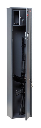 Шкаф оружейный Чирок 1318 EL предназначен для хранения огнестрельного оружия и соответствует требованиям ст.59 Постановления правительства РФ № 814 от 21 июля 1998 года О мерах по регулированию гражданского и служебного оружия и патронов к нему на территории РФ. Изготовлен из металла толщиной 1,5 мм. Внутренние размеры шкафа (ВхШхГ)мм 1284/1084х259х162. Максимальная высота ствола 1074 мм. Вместимость шкафа 1 ствол. Шкаф комплектуется трейзером (ВхШхГ)мм 200х259х152, кодовым электронным замком PLS-3 с аварийным ключем и ключевым замком. Предусмотрена возможность анкерного крепления к стене. Цвет шкафа -графит структурированный. Тип покрытия порошковое